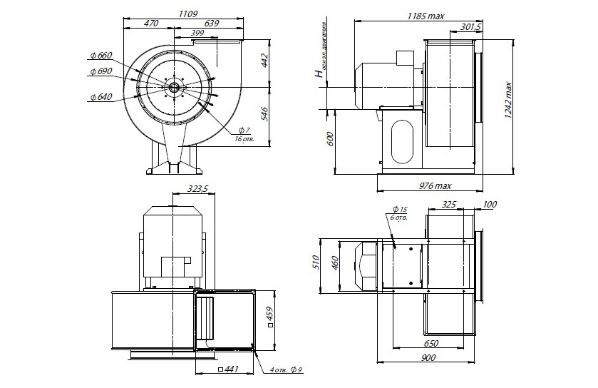 Вентилятор радиальный ВЦ 14-46 (ВР-280-46) №6,3 (18,5кВт/1000об) Среднего давления